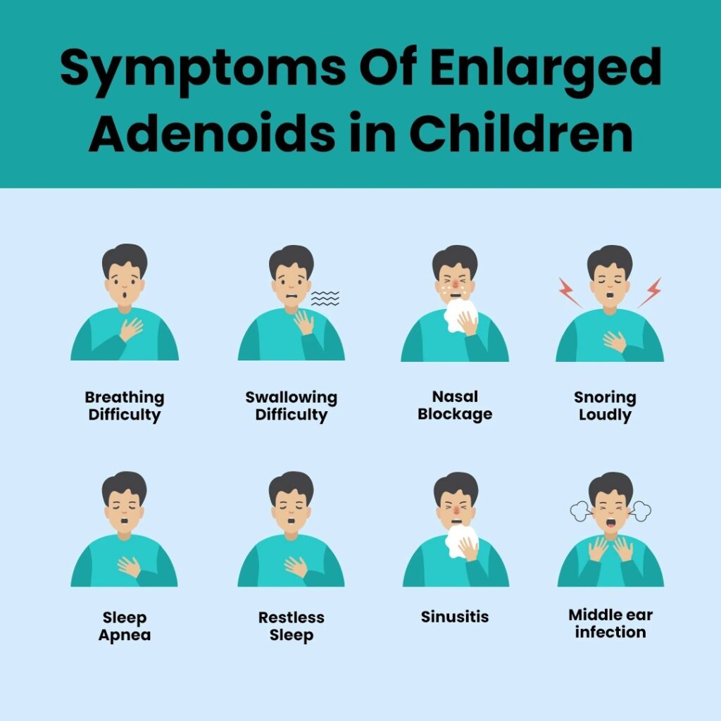 When the adenoids become enlarged (a condition known as adenoid hypertrophy), they can obstruct the airway and lead to several symptoms, including: